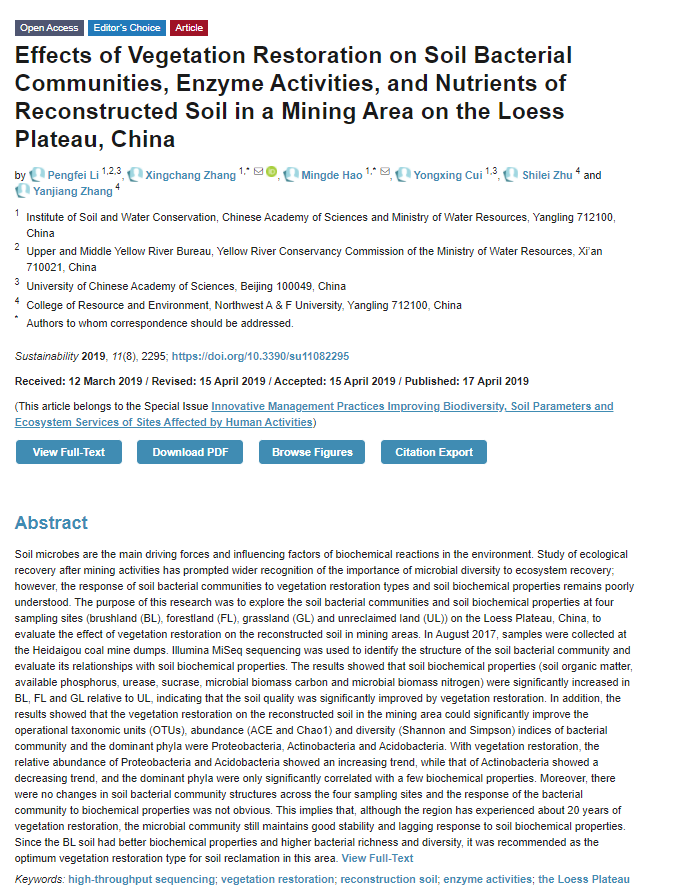 #SUSEditorialChoice #Effects of Vegetation #restoration on Soil Bacterial Communities, Enzyme #activities, and #nutrients of Reconstructed Soil in a Mining Area on the Loess Plateau, #China by Pengfei Li, et al., http://www.mdpi.com/2071-1050/11/8/2295 … #SoilHealth #SoilBiodiversity #SoilEcologypic.twitter.com/RJ6L3rmFMf