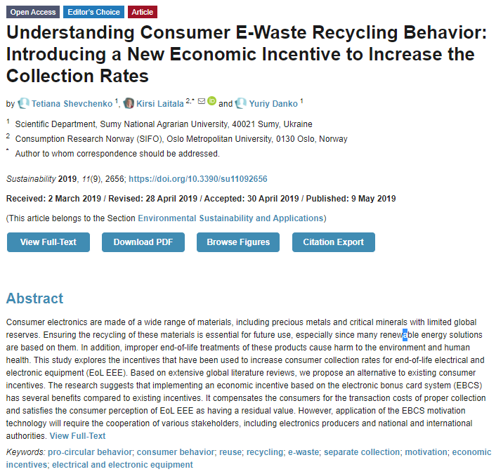 #Understanding Consumer E-Waste #recycling Behavior: Introducing a New Economic Incentive to Increase the Collection Rates