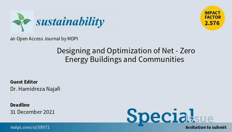 #SUSSpecialIssue #Energy "Designing and Optimization of Net-Zero Energy Buildings and Communities" welcomes the submission by Dr. Hamidreza Najafi #EnergyTransition #buildings #design #optimization #efficiency More at: https://www.mdpi.com/journal/sustainability/special_issues/energy_buildings_communities …pic.twitter.com/3VipXvwdIt