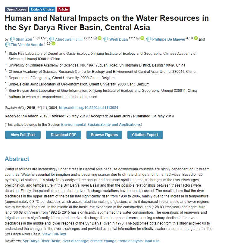 #Human and #natural Impacts on the Water #resources in the Syr Darya River Basin, Central #Asia