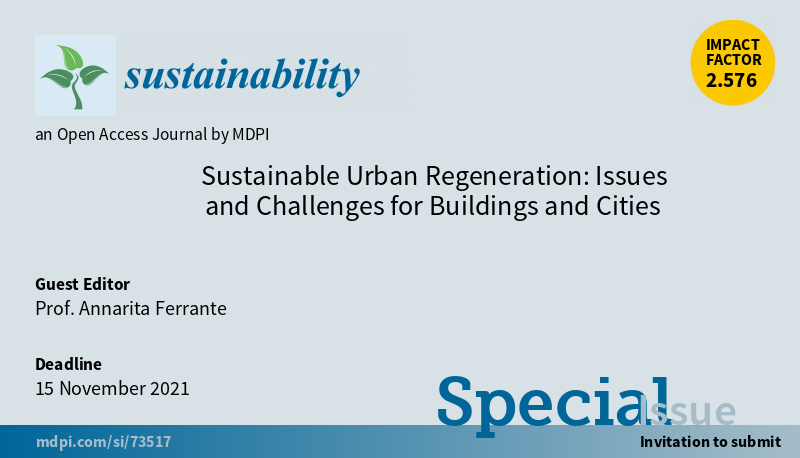 #SUSSpecialIssue "Sustainable Urban Regeneration: Issues and Challenges for Buildings and Cities" welcomes the submission by Prof. Annarita Ferrante #sustainableliving #buildings #safety #EnergyEfficiency #sustainablility More at: https://www.mdpi.com/journal/sustainability/special_issues/sustainable_urban_regeneration …pic.twitter.com/sV82tg4EcR