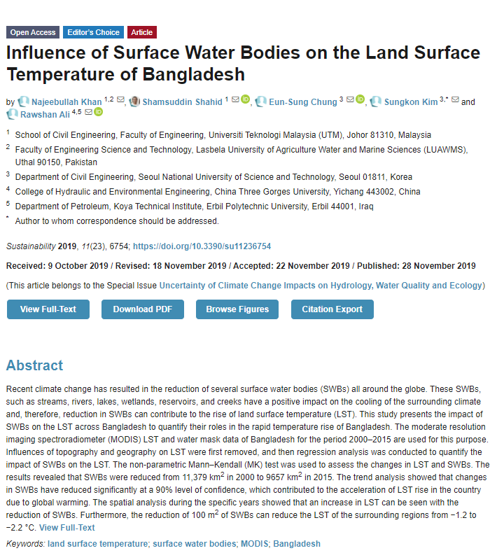 #Influence of Surface #Water Bodies on the Land Surface Temperature of #Bangladesh