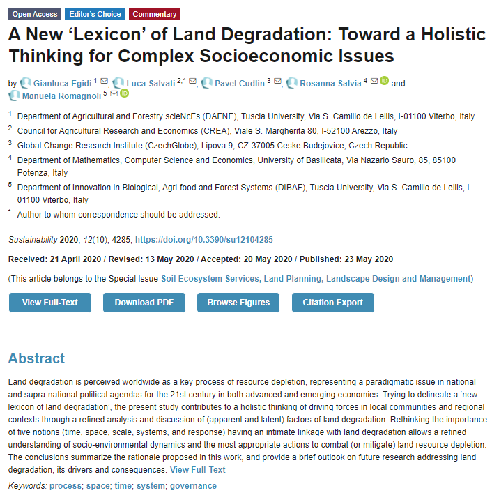 A New ‘Lexicon’ of Land #Degradation: Toward a Holistic Thinking for Complex #Socioeconomic Issues