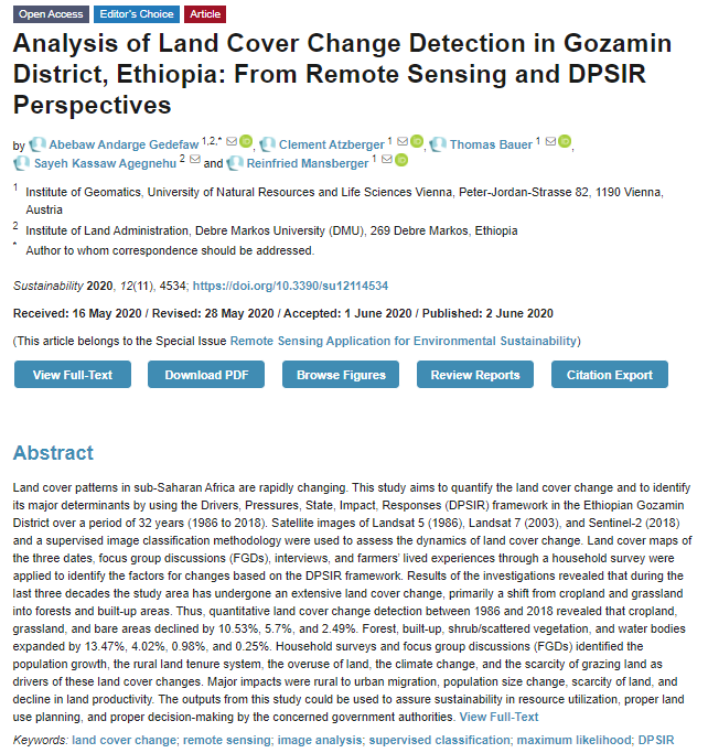 #SUSEditorialChoice Analysis of Land Cover Change Detection in Gozamin District, #Ethiopia: From Remote Sensing and #DPSIR Perspectives by Abebaw Andarge Gedefaw, et al., http://www.mdpi.com/2071-1050/12/11/4534 … #landcover #remotesensing #sustainabilitypic.twitter.com/3YqbXwdRwr