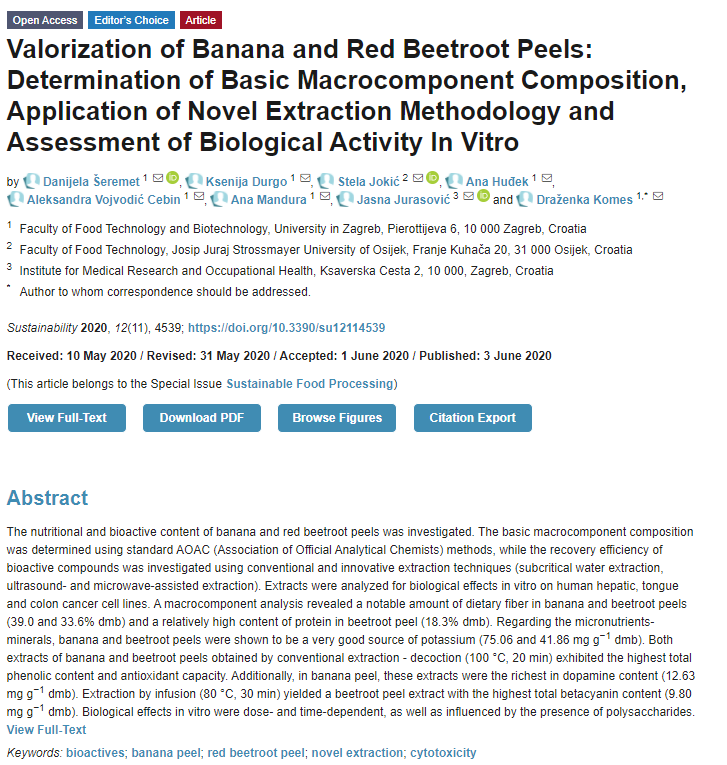 #SUSEditorialChoice Valorization of Banana and Red Beetroot Peels: Determination of Basic Macrocomponent Composition, Application of Novel Extraction Methodology and Assessment of Biological Activity In Vitro by Danijela Šeremet, et al., http://www.mdpi.com/2071-1050/12/11/4539 … #sustainabilitypic.twitter.com/Kun5hdCQXJ