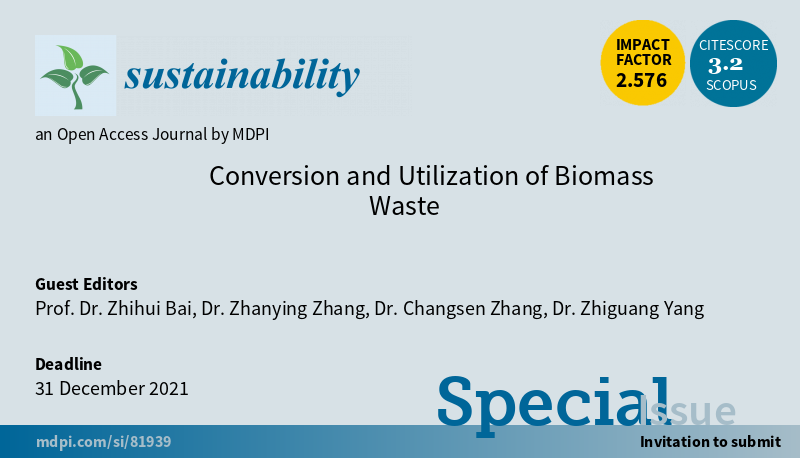 #SUSSpecialIssue “Conversion and Utilization of Biomass Waste” welcomes the submission by Prof. Dr. Zhihui Bai, Dr. Zhanying Zhang, et al. #sustainability #Agriculture #biofuels More at https://www.mdpi.com/journal/sustainability/special_issues/conversion_utilization_biomass_waste … @ZhanyingZhangpic.twitter.com/Hz2RPhGwel