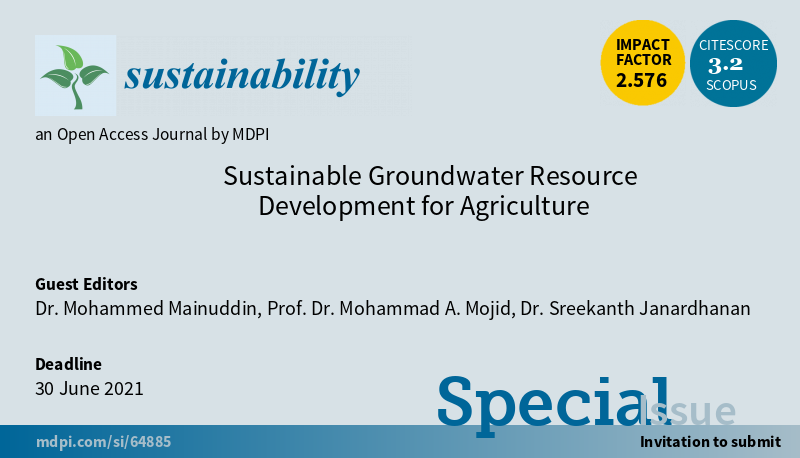 #SUSSpecialIssue "Sustainable Groundwater Resource Development for Agriculture" welcomes the submission by Dr. Mohammed Mainuddin, et al. #sustainability #groundwater #agriculture #climatechange More at https://www.mdpi.com/journal/sustainability/special_issues/groundwater_agriculture … @MohammadMojidpic.twitter.com/s4s3W8ts7S