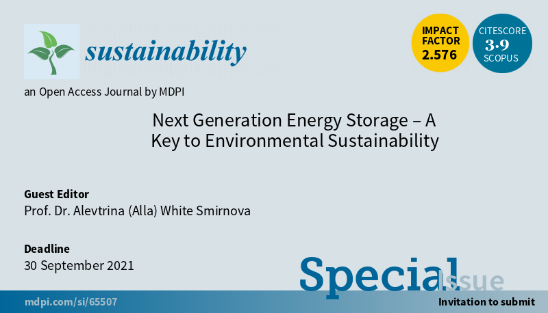 #SUSSpecialIssue "Next Generation #Energy Storage – A Key to #Environmental Sustainability" welcomes the submission by Prof. Dr. Alevtrina (Alla) White Smirnova #energystorage More at http://mdpi.com/journal/sustainability/special_issues/generation_energy_storage_environmental_sustainability …pic.twitter.com/PNnfLXMIeF