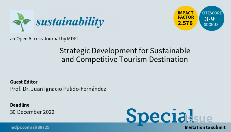 #SUSSpecialIssue "Strategic Development for Sustainable and Competitive Tourism Destination" welcomes the submission by Prof. Dr. Juan Ignacio Pulido-Fernández #sustainability #tourism #planning #consumer More at https://www.mdpi.com/journal/sustainability/special_issues/sustainability_tourism … @JairoCasado08 @dilopezmolinapic.twitter.com/UApvOJ5asf