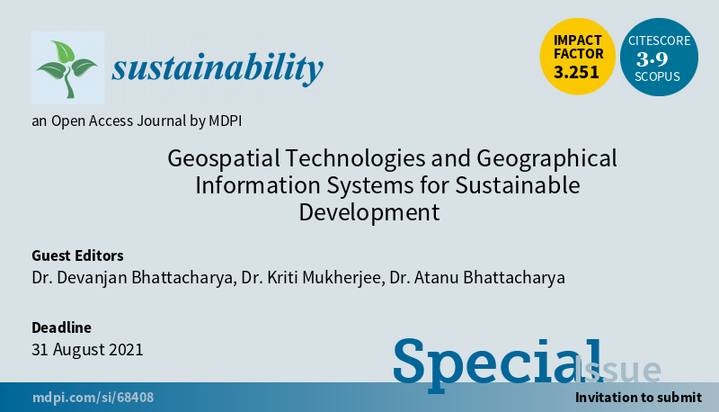 "Geospatial Technologies and Geographical Information Systems for Sustainable Development" welcomes the submission