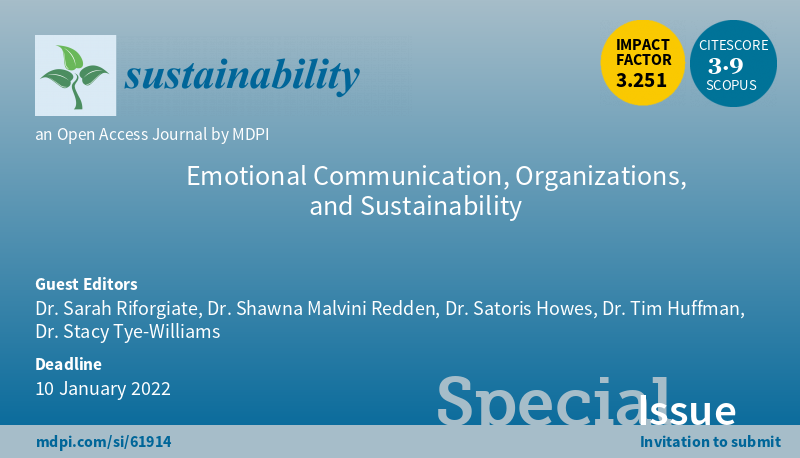 #SUSSpecialIssue "Emotional Communication, Organizations, and Sustainability" welcomes the submission by Dr. Sarah Riforgiate, et al. #sustainability #CSR #business #communication More at https://www.mdpi.com/journal/sustainability/special_issues/emotional_communication_organizations_sustainability …pic.twitter.com/CJdY1k0Vl2