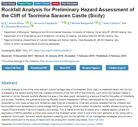 Rockfall Analysis for Preliminary Hazard Assessment of the Cliff of Taormina Saracen Castle (Sicily)