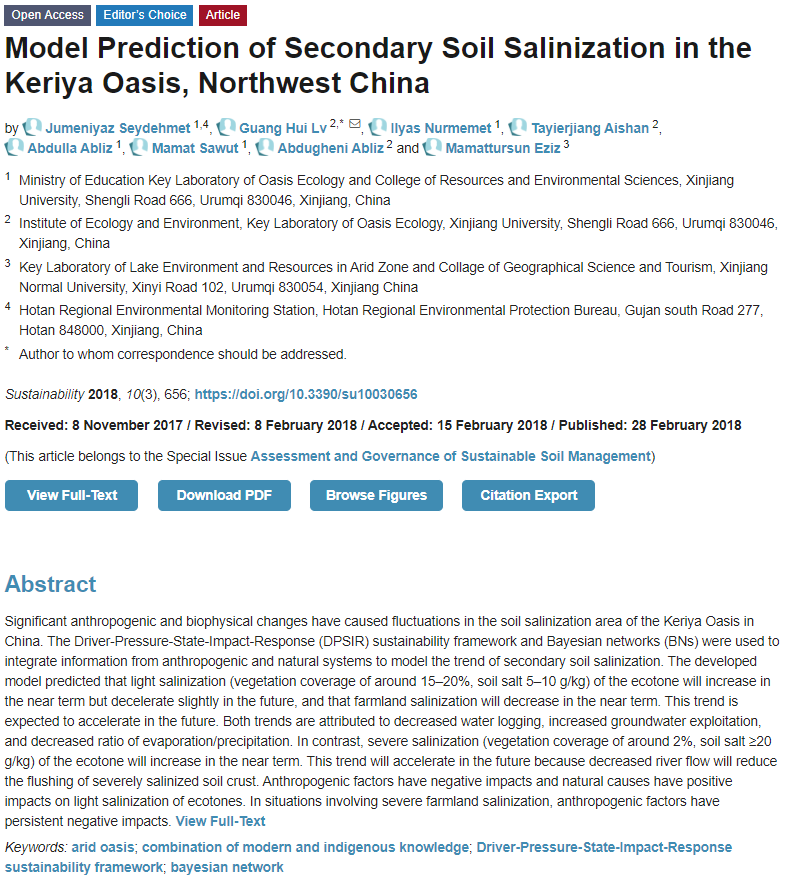 #SUSEditorialChoice Model Prediction of Secondary Soil Salinization in the Keriya Oasis, Northwest China by Jumeniyaz Seydehmet, et al., https://www.mdpi.com/2071-1050/10/3/656 … #arid_oasis #bayesian #sustainabilitypic.twitter.com/vdjD2VWMl8