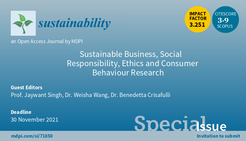 "Sustainable Business, Social Responsibility, Ethics and Consumer Behaviour Research" welcomes the submission