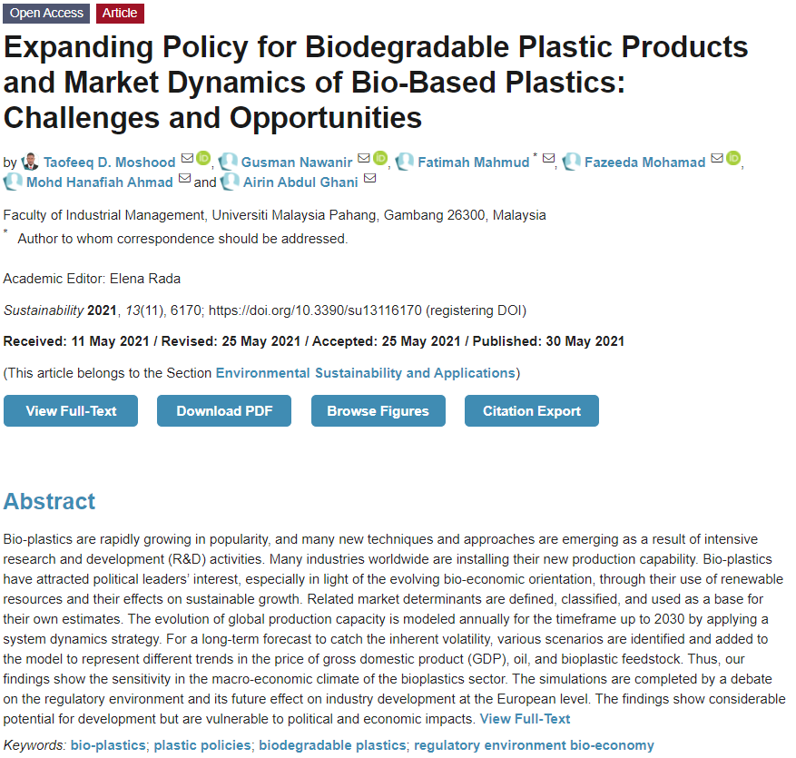 #SUSEditorialChoice Expanding Policy for Biodegradable Plastic Products and Market Dynamics of Bio-Based Plastics: Challenges and Opportunities by Raúl Taofeeq D. Moshood, et al., https://www.mdpi.com/2071-1050/13/11/6170 … #plastics #biodegradable #policies #sustainabilitypic.twitter.com/PAg6jlEV0b
