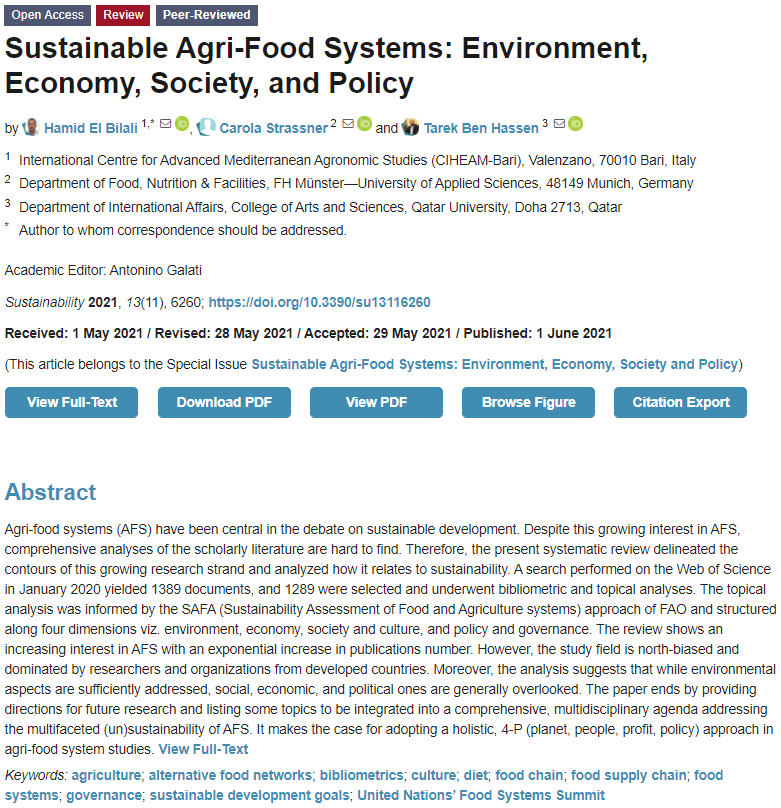 Sustainable Agri-Food Systems: Environment, Economy, Society, and Policy