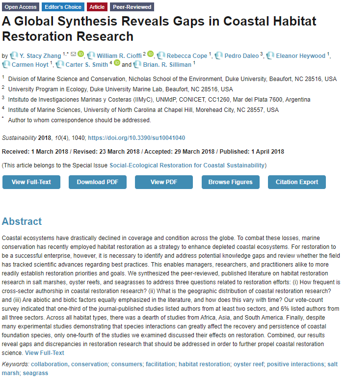 #SUSEditorialChoice A Global Synthesis Reveals Gaps in Coastal Habitat Restoration Research by Y. Stacy Zhang et al., https://www.mdpi.com/2071-1050/10/4/1040 … #collaboration #conservation #consumers #sustainabilitypic.twitter.com/cXwJlRNVYa