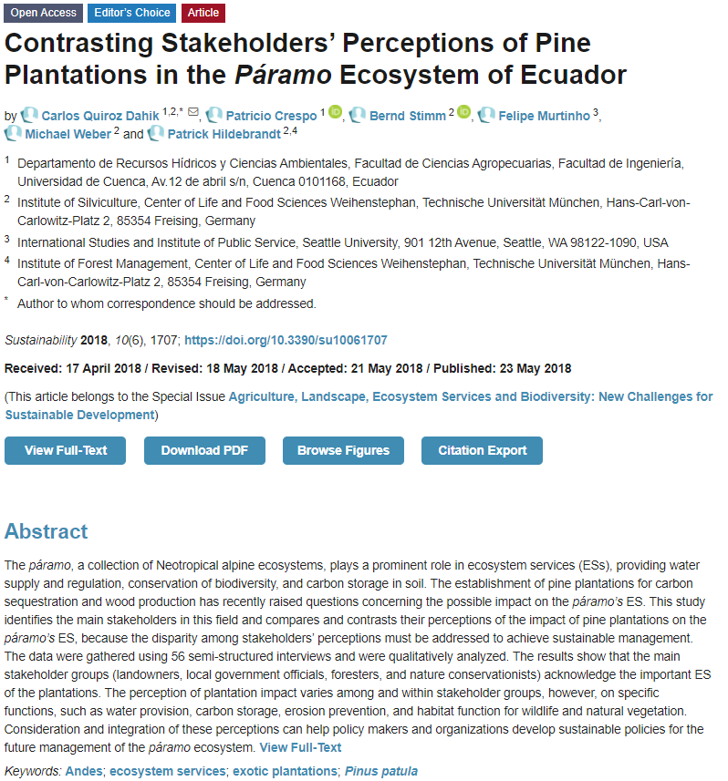 #SUSEditorialChoice Contrasting Stakeholders’ Perceptions of Pine Plantations in the Páramo Ecosystem of Ecuador by Carlos Quiroz Dahik, et al., https://www.mdpi.com/2071-1050/10/6/1707 … #Andes #ecosystem #plantations #sustainabilitypic.twitter.com/rxOR1sZ0Ec