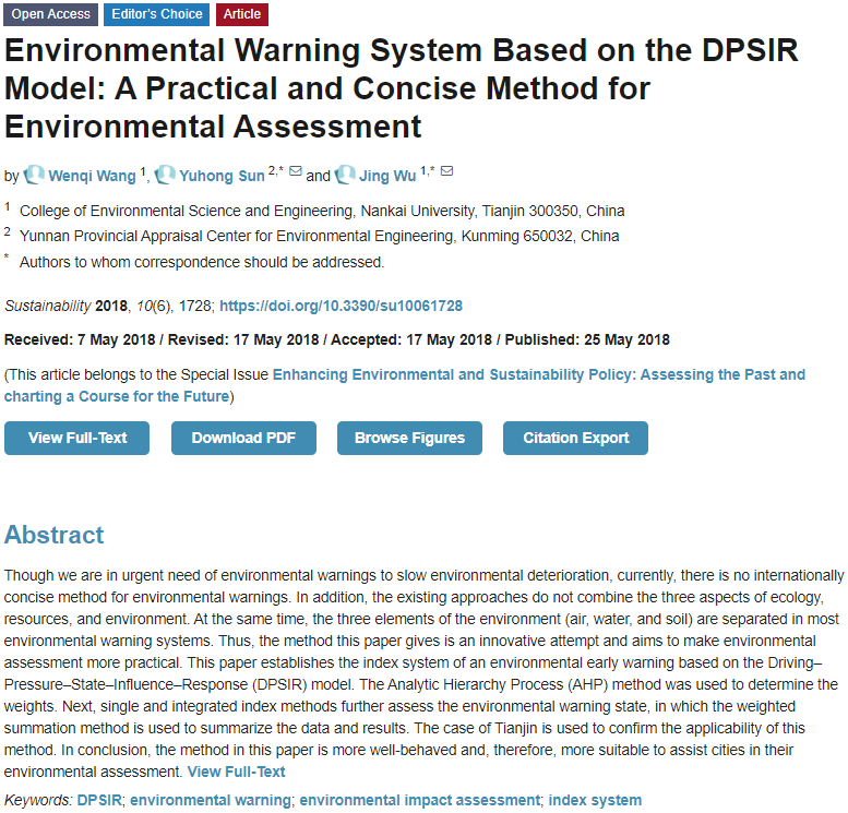 #SUSEditorialChoice Environmental Warning System Based on the DPSIR Model: A Practical and Concise Method for Environmental Assessment by Wenqi Wang, et al., https://www.mdpi.com/2071-1050/10/6/1728 … #DPSIR #warning #environmental #sustainabilitypic.twitter.com/V0WdiZXUd3