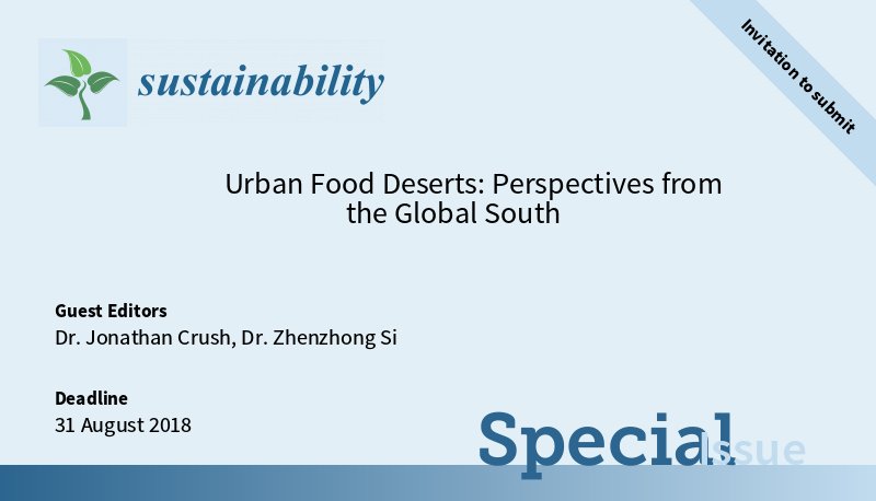 A new Special Issue "Urban Food Deserts: Perspectives from the Global South" is currently running, edited by Dr. Jonathan Crush and Dr. Zhenzhong Si @SiChinaFood, Balsillie School of International Affairs. More details at