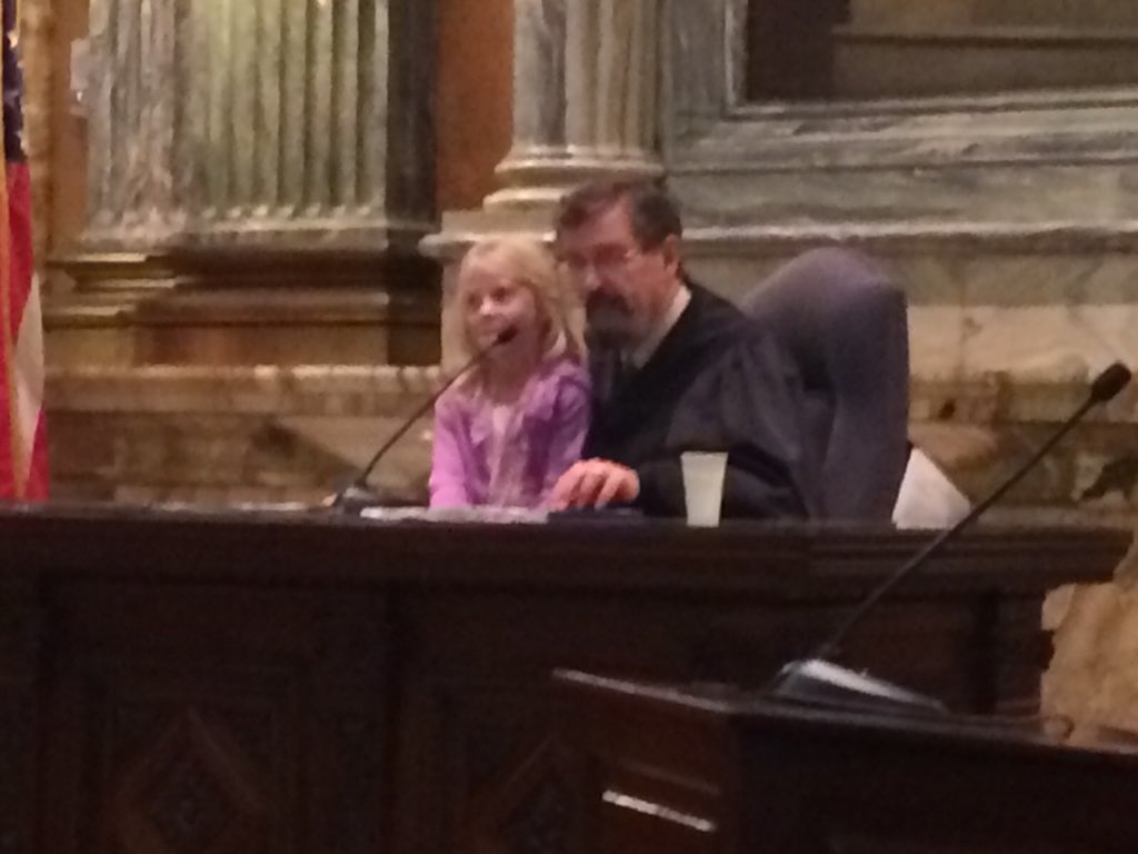 The judge presiding @ the Indianapolis naturalization ceremony had help from the daughter of 2 new US citizens #IN05pic.twitter.com/f9bFKaeOMU