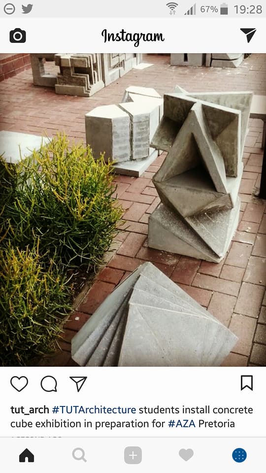 #TUTArchitecture students install concrete cubes exhibition in preparation for#AZA#AZA18#TUTBuilding11 Community has taken ownership alreadypic.twitter.com/e3xUP7JVql
