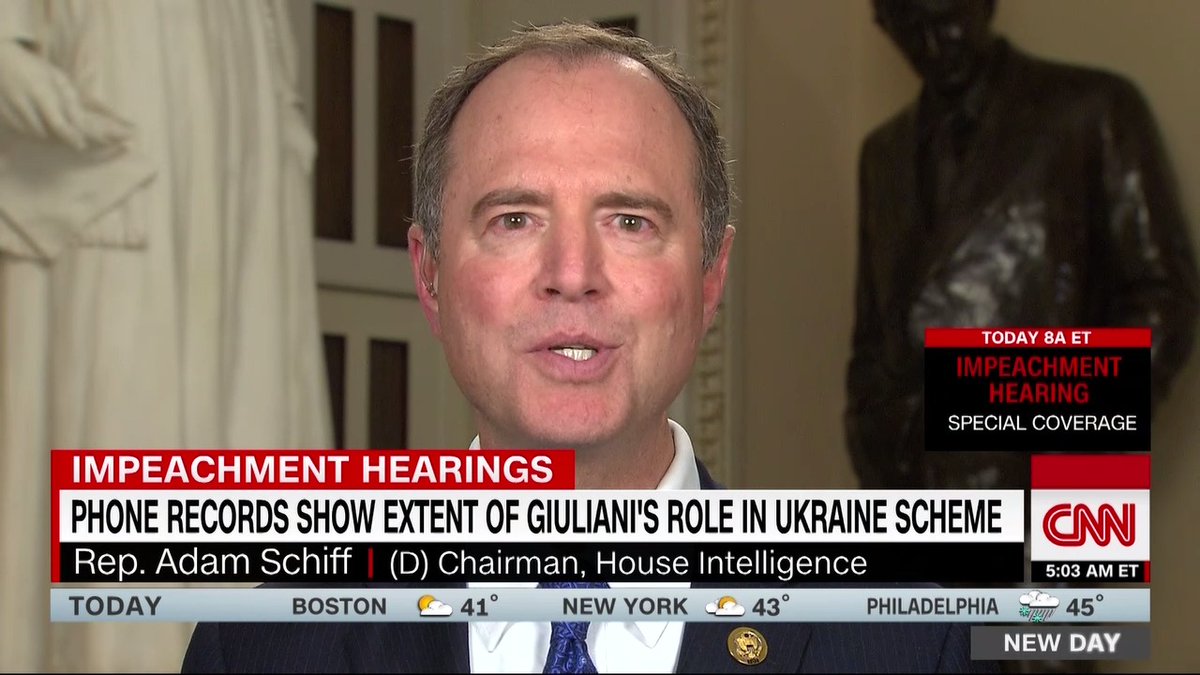 Rep. Adam Schiff announces public impeachment testimonies will begin next weekhttps://twitter.com/NewDay/status/1192400365108498432?s=20 …