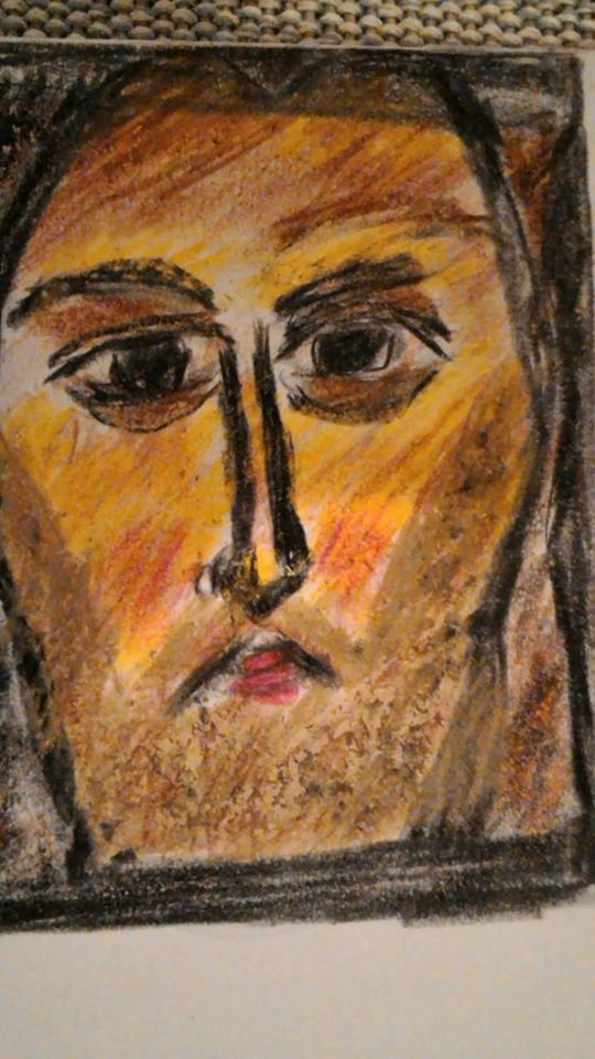 I figure if I'm going to convert the family to E Orthodox, I will have to teach them to draw icons. Here's my imitation of Andrei Rublev's *Christ the Redeemer* (ca. 1410). Not bad for a first try.pic.twitter.com/QH8tGxb31Y