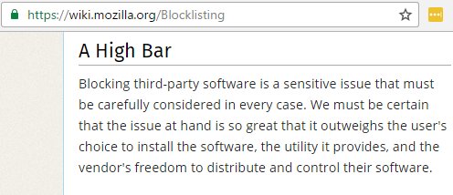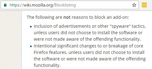 Mozilla won't block addons that inject advertising - developers have that right and they're not going to take low-life "user" complaints.pic.twitter.com/HuOK1n68YV