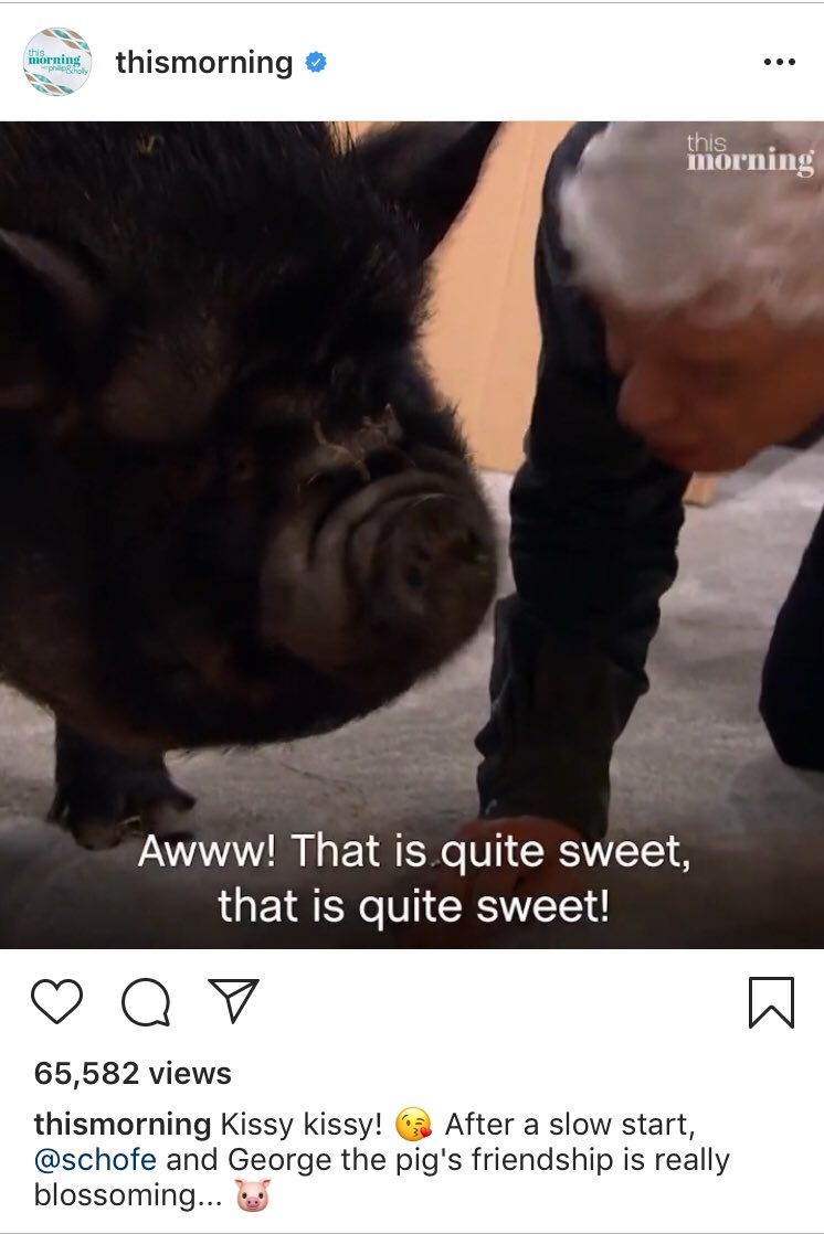 @thismorning a few weeks ago, Phil and Holly were happily promoting dead pig flesh to the British public - that “Bacon was back on the menu” Here they are today on the same show playing with a live pig and saying how sweet he is. The disconnect is real.#meatthevictimsnipic.twitter.com/88ziliGOjy