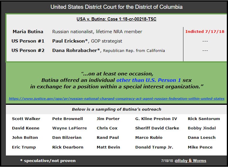 Here’s a new chart to keep track of individuals connected to Maria Butina (Russian/NRA) and possibly to her grand jury indictment in DC.pic.twitter.com/ScFJOgNjYy
