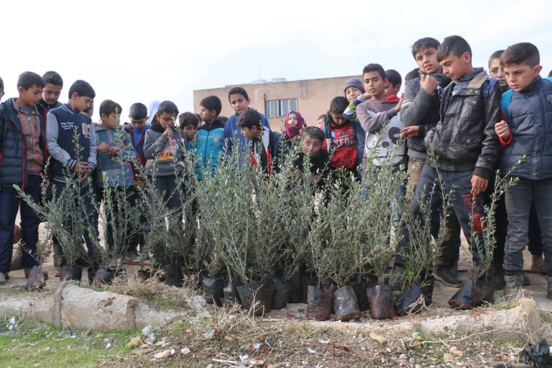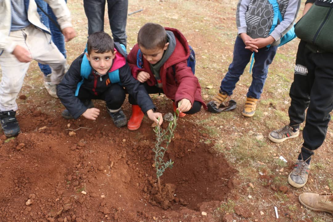 فعاليات الثورة السورية قامت بحملة شجرة الحرية في مدينة كفرتخاريم بغرس ٣٠٠٠ شجرة