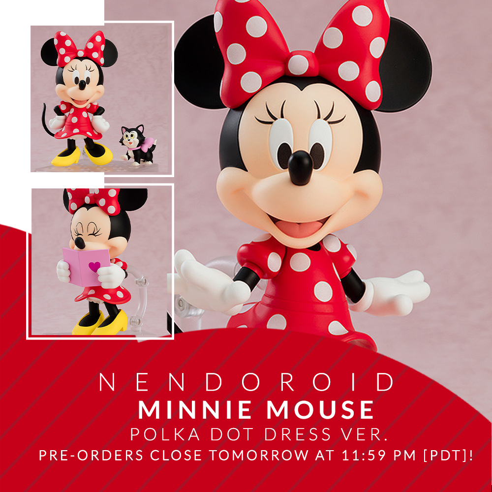 Her smile reaches ear to ear. The Polka Dot version of Nendoroid Minnie Mouse from Minnie Mouse has pre-orders closing tomorrow at 11:59PM PDT! She comes with Figaro, a cupcake & more! Pre-order now on the GOODSMILE ONLINE SHOP US! Preorder: http://s.goodsmile.link/7kA