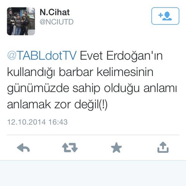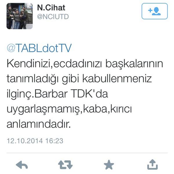 @TABLdotTV Evet Erdoğan'ın kullandığı barbar kelimesinin günümüzde sahip olduğu anlamı anlamak zor değil(!) -