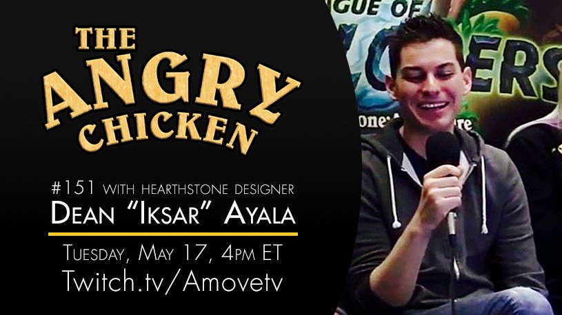 In just over an hour we'll be sitting down w/ #Hearthstone designer @IksarHS! http://www.twitch.tv/amovetv pic.twitter.com/T4x0Smhaea