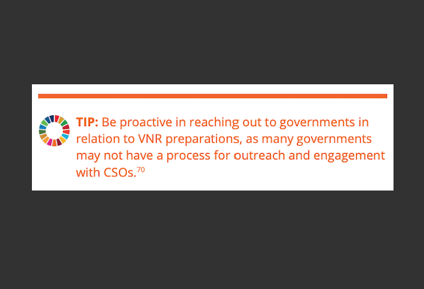 TAP TIP on ensuring that #CSOs are included in official #VNR processes--from our TAP Member @Sightsavers. More practical tips for national-level #civilsociety SDG monitoring available in TAPs forthcoming SDG Accountability Handbook. Print & digital versions available March 2019pic.twitter.com/lqDPR99WXW