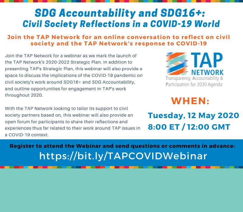 LAST CHANCE! Join us in one hour for TAP's webinar. We will outline our strategic priorities & provide a platform for reflection on the impact of the COVID-19 Pandemic. Don't miss it! Register @ https://bit.ly/TAPCOVIDWebinar pic.twitter.com/SSmqlhVpXz