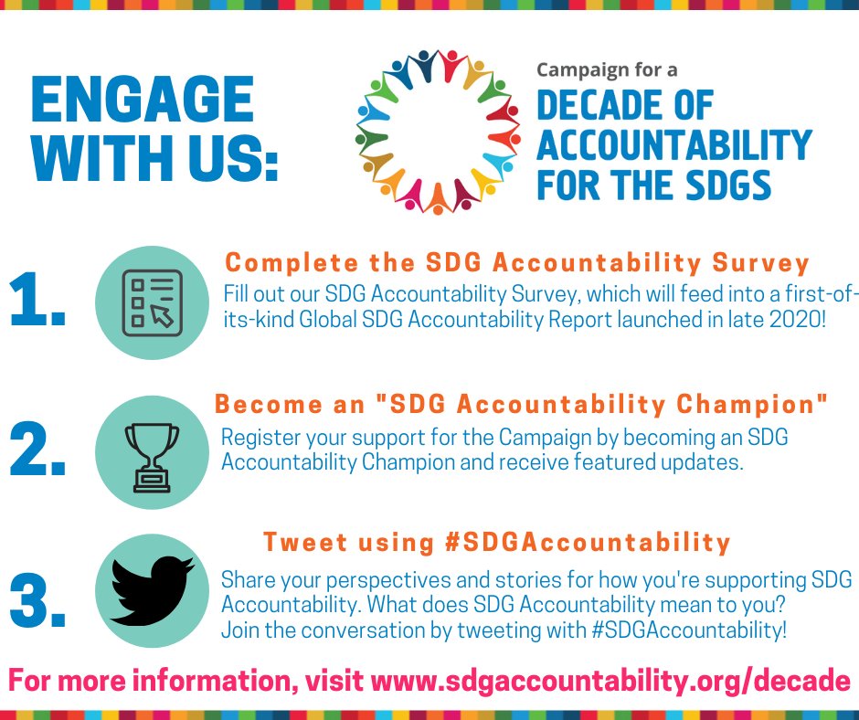 There are many ways to engage with our new campaign for #SDGAccountability: the #DecadeOfAccountability for the #SDGs & the #2030agenda.