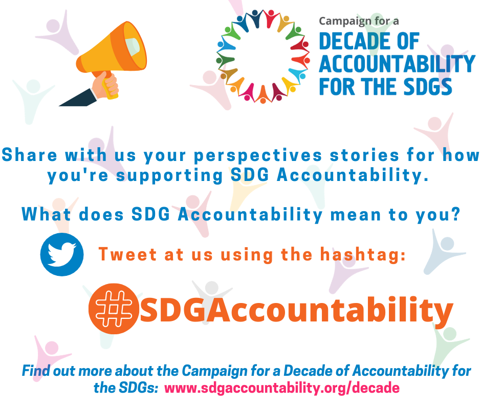 Want to be a part of the new #DecadeOfAccountability to accelerate #SDGAccountability? Join the discussion using the hashtag #SDGAccountability & share with your story with us! What does accountability mean to you? Why do you fight for #SDGAccountability?pic.twitter.com/1ycy0vgY9I
