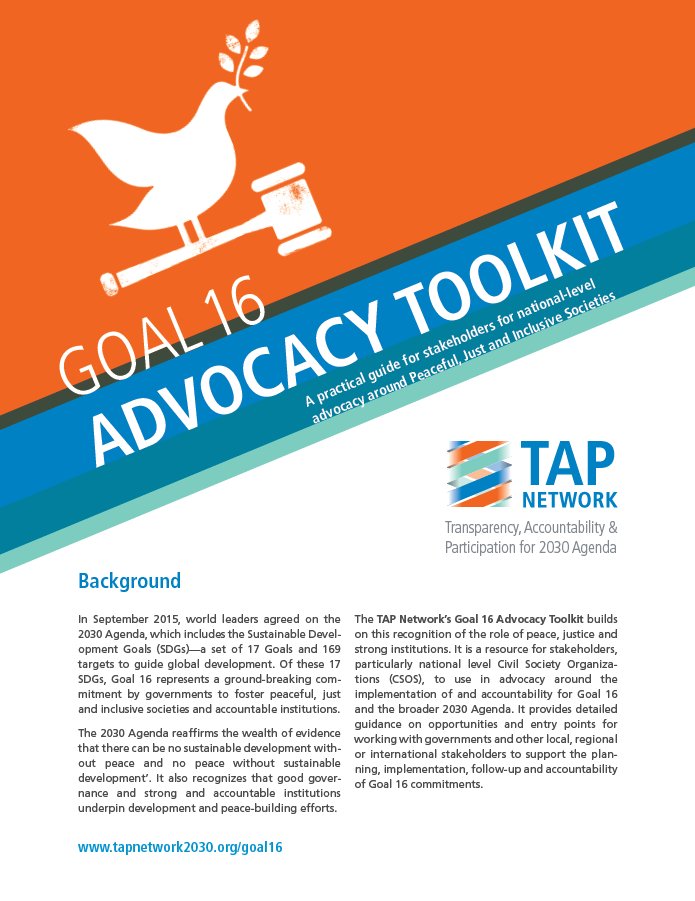 Check out TAP's newest #Goal16 #workshop #resources for national level advocacy! http://bit.ly/2aDGI0s pic.twitter.com/JGYhTTG6zm