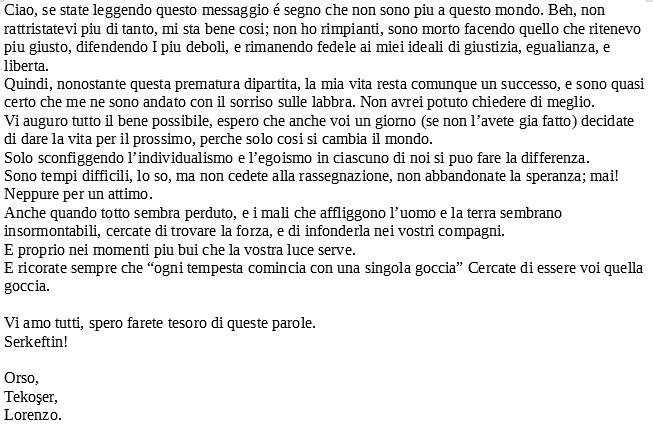Grande rispetto e onore per il Compagno Lorenzo Orsetti "Orso"
