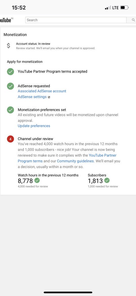 Dear Youtube Team, According to YouTube policy a user must have 4K watch hours and 1K subscribers to enable monetization, As I have already reached 8778 Watch hours and also completed my 1812 Subscribers. My request you to please review my channel and enable monetization as soon