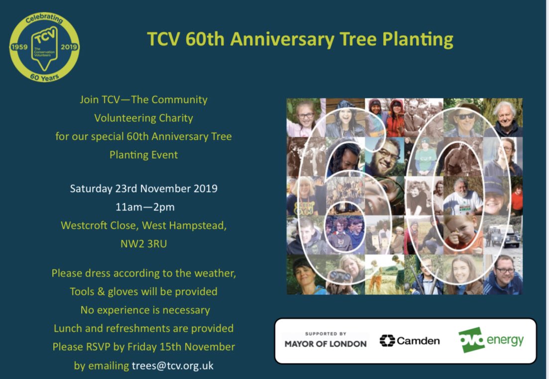 @TCVtweets 60th Anniversary next Saturday 23rd November. We need lots of#Volunteers to plant 3,650#trees Activities for all the family and lunch provided! Register here: https://bit.ly/379nURF pic.twitter.com/l1MvhzVNfa