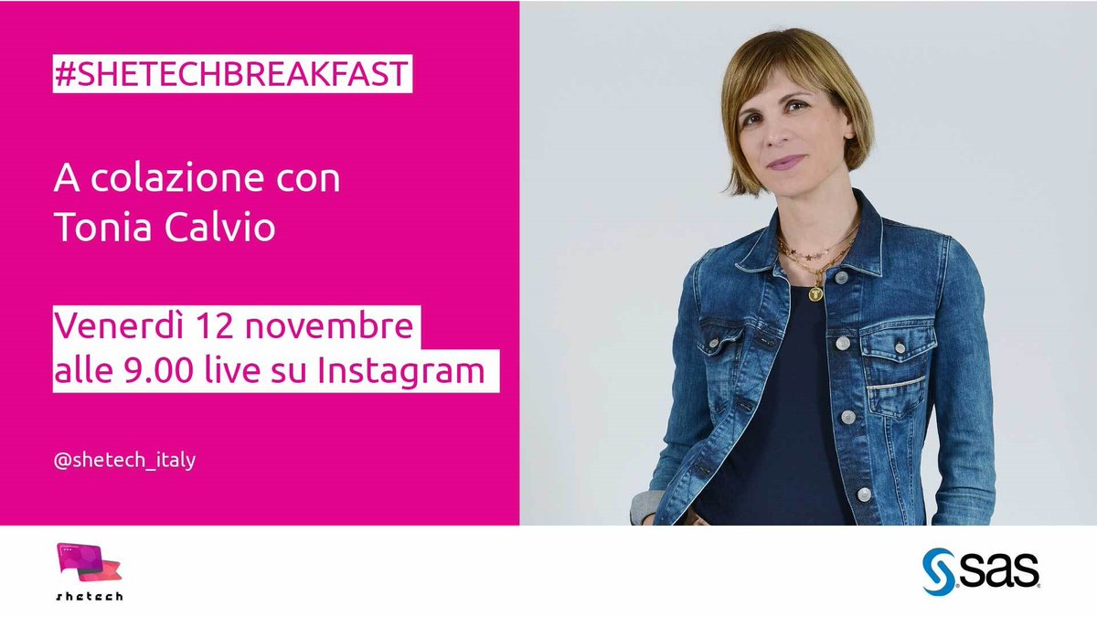 Appuntamento venerdì alle ore 9:00 insieme a @SheTechItaly per una colazione virtuale in diretta con@TCalvio, Regional Marketing Director SAS. Parleremo di curiosità, innovazione, marketing, dati e molto altro ancora.#SheThBreakfast#InstagramLive http://2.sas.com/6010JbjCy pic.twitter.com/WsuOQEpR0B