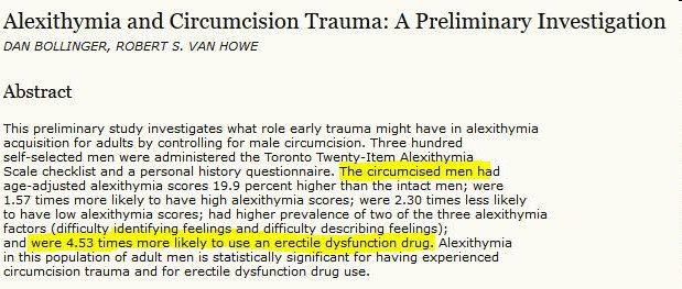 Nope another lie by you. Plenty of men who have been circumcised suffer psychological trauma, depression, anxiety, psychological damage as well as the severe physical damage from being violently genitally mutilated in early childhood. Circumcision is pedophile rape/sexual assault