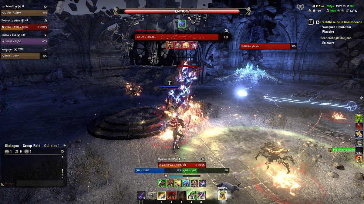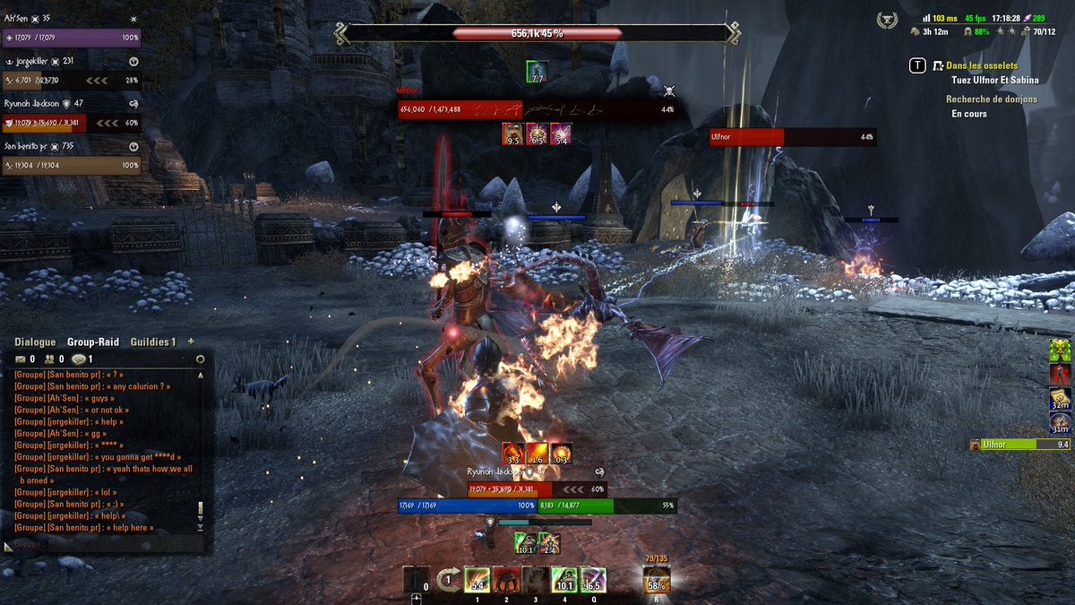 Celle-ci, dans le même donjon, a été chiante car elle trichait avec sa flamme bleue :P Je suis arrivé en cours de session car le précédent tank avait quitté le groupe (il a abandonné suite aux "wipes" successifs. Chochotte, va !). #ESO #Jour16 #ElderScrollsOnlinepic.twitter.com/q1pOmrnBfd