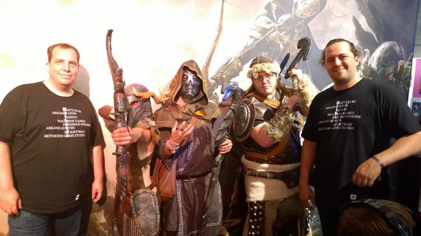 Notre équipe communautaire n’a qu'à bien se tenir ! Ce Dovahkiin a apporté du renfort sur le stand #ESO à la Gamescompic.twitter.com/yPCwHdbTuD