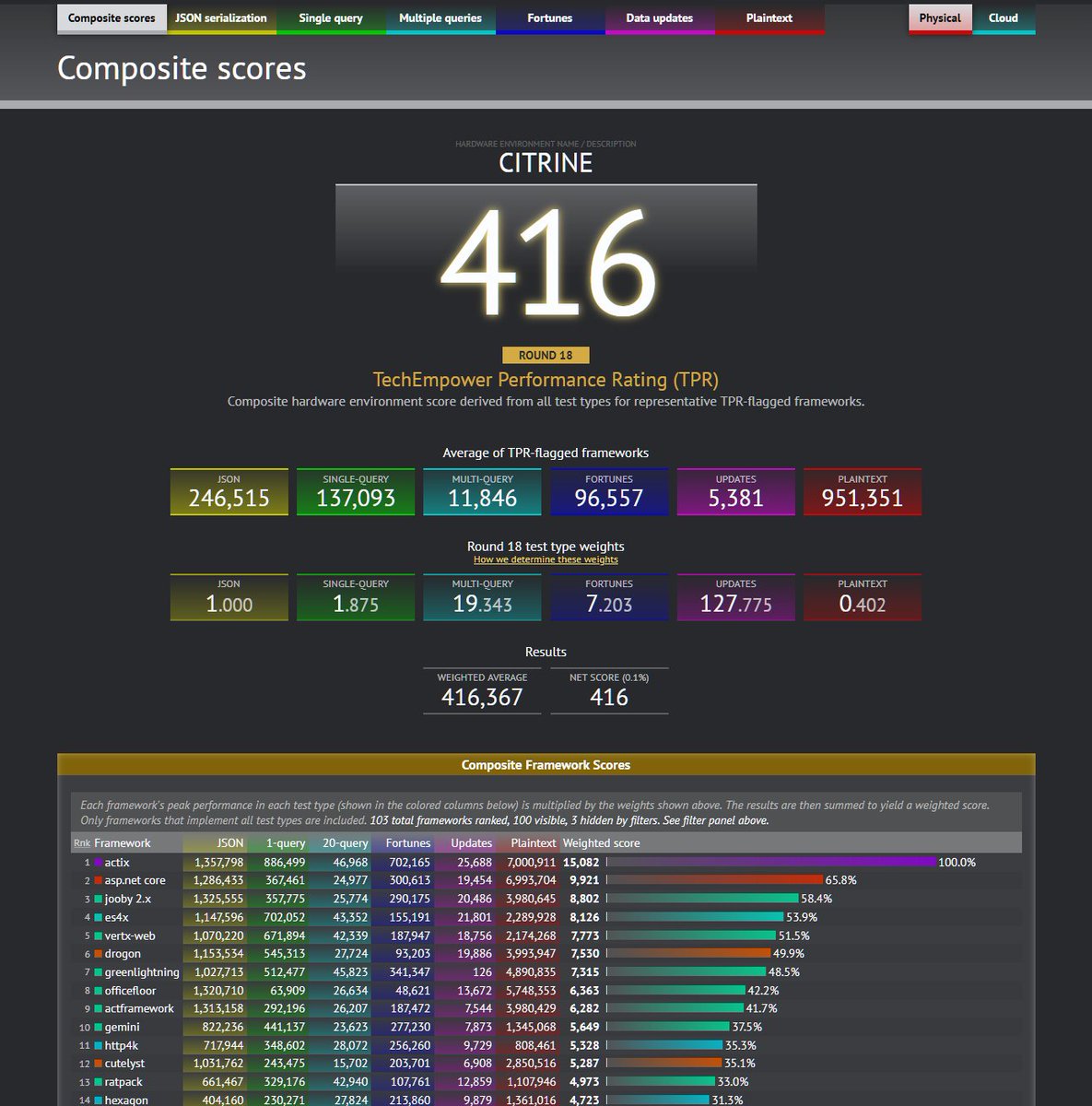 A power outage on Sunday interrupted the previous Citrine continuous run. We've started a new run this morning: https://tfb-status.techempower.com/results/f317f963-c164-4bd2-9240-9dd9084a0cea …