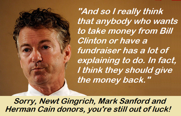 Watch out Herman Cain! Rand Paul is calling for campaign donation refunds if you had an affair!