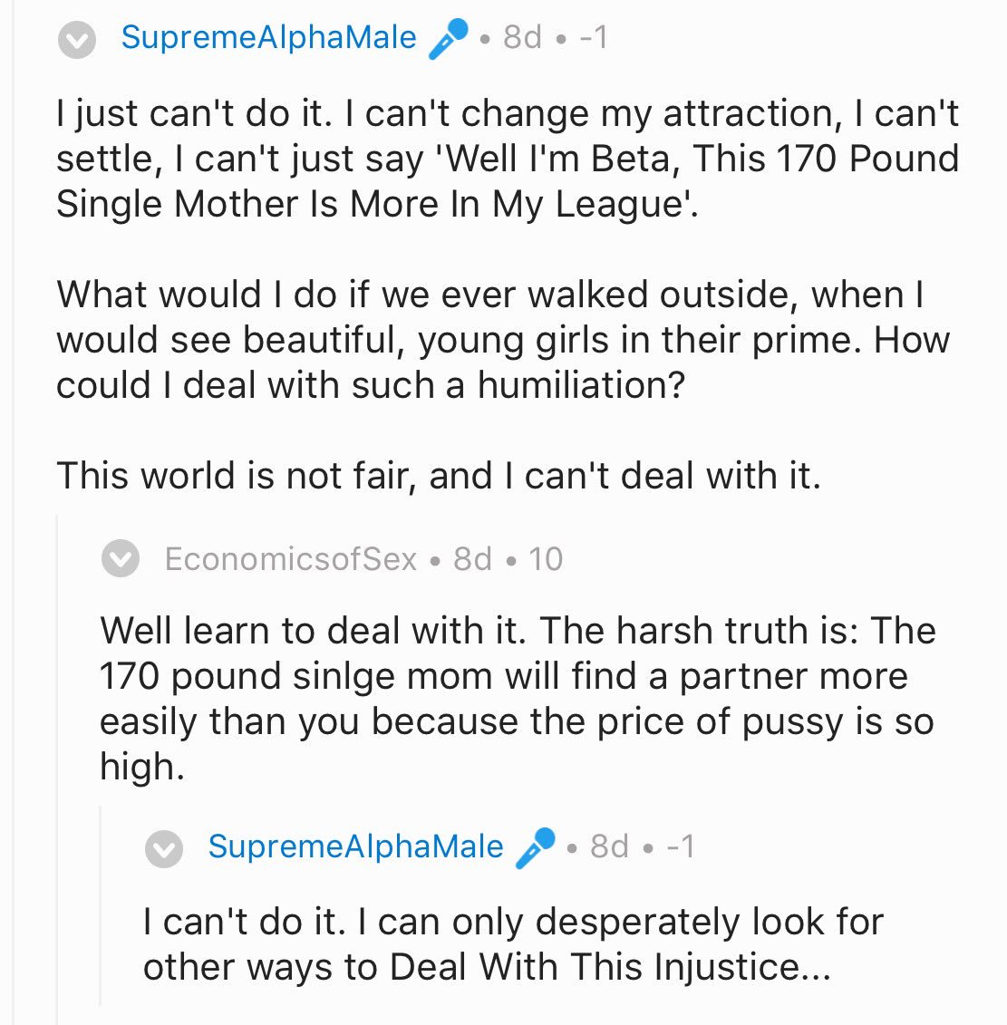 if this is from r/incel or r/theredpill then it's actually pretty tame sadly. I've met the odd one in real life. Not pleasant